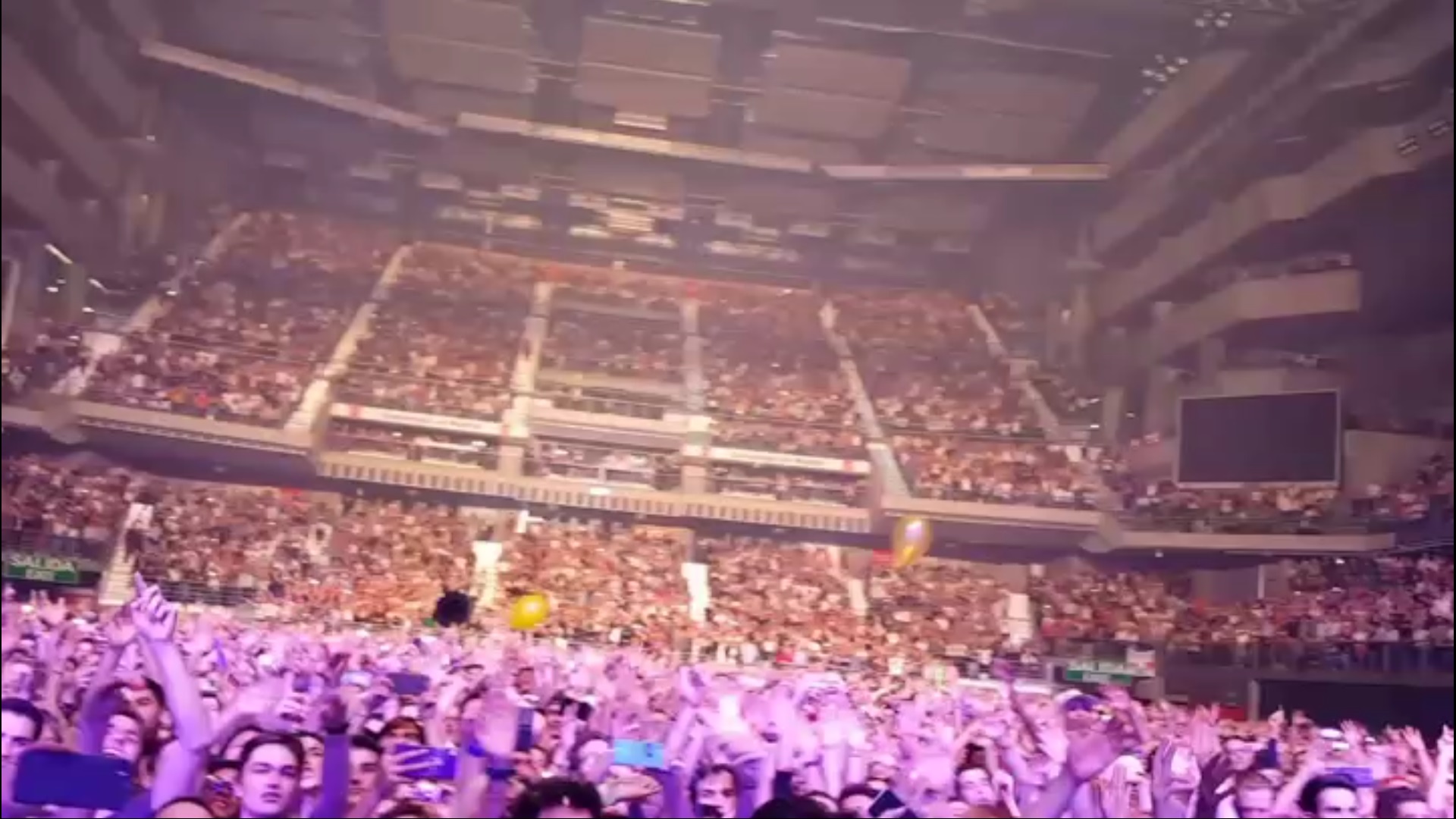 Tras un fugaz blackout -terminación inglesa para describir un apagón de luces en el escenario-, comenzaron a sonar los primeros Hey de «That’s What I Like», aquí debo confesar que, aunque esperaba que Bruno recreara la coreografía del videoclip, bordó y desbordó -en, absolutamente, todos los sentidos- la canción gracias a la compañía de sus coristas y músicos que se movían a su son y lo seguían en TODOS sus movimientos. Con «Straight Up & Down» debo contar que he vivido EL MEJOR PUTO MOMENTO DE MI VIDA: en mitad de la canción, Bruno cogió una toalla para secarse el sudor y tras terminar su acción, nos vio a los hooligans que estábamos en su lado izquierdo -sector en el que estaba yo- llamándolo, coreando y alabándolo, yo vi que tenía toda la intención de tirarnos la toalla y efectivamente, LO HIZO, pero lo hizo sin ningún tipo de esfuerzo para que la toalla volara hasta la mitad de la pista, lo hizo para que alguno de los que estábamos en la primera fila la cogiera… amigos, ADIVINEN QUIÉN COGIÓ ESA TOALLA!!!!!! ???? El freaky que llevo dentro salió a relucir y estiré mi brazo como si no hubiera un mañana Y ME LLEVÉ ESTA TOALLA!!!!!! En ese momento mi freaky interior se apoderó de mí que empecé a gritar de alegría, histeria, emoción y muchos adjetivos más que no cabía dentro de mí mientras hacía girar la toalla en mi mano; eso sí, la cara de Bruno al verme gritando de ABSOLUTA ALEGRÍA fue impagable al igual que la de los miembros de seguridad que me tachaban de belieber momentos antes de que empezara el concierto, en cuanto me calmé escuché que Juantxo me llamó y no hicimos más que chocarnos esos cinco por mi increíble victoria ?????? -para quien no me crea, la prueba visual la podréis ver al final de este párrafo- ☺️☺️☺️ Otra vez más, tras mi momentazo de victoria al agarrar la toalla y tras cantarle unas estrofas en exclusiva a la chica que tenía a mi izquierda porque le tiró un tanga, se volvió a relajar el ambiente con «Versace on the Floor», desde el techo bajaron unos adornos luminiscentes de color amarillo dorado que estuvieron acompañando durante toda la canción y le daba un toque bastante romántico y muy tierno; desde el escenario también se elevó una plataforma acompañada de una pantalla en la que Bruno continuó cantando hasta acabar y puedo decir que de lo que llevaba visto, ha sido mi puesta en escena favorita ❤️❤️❤️